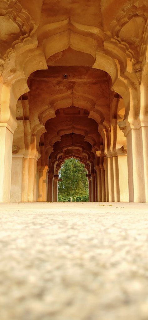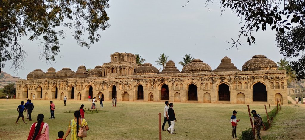 iv) পরদিন সকালে auto নিয়ে হাম্পি, 300 টাকা দিয়ে। এইখানেই শুধু accommodation book করা ছিলো, হাম্পি থেকে একটু দূরে কমলপুরে, KSTDC র ‘Mayura Bhuvaneshwari‘। World heritage site area র মধ্যে এটিই একমাত্র hotel। এদের 10-bed dormitory ও আছে।