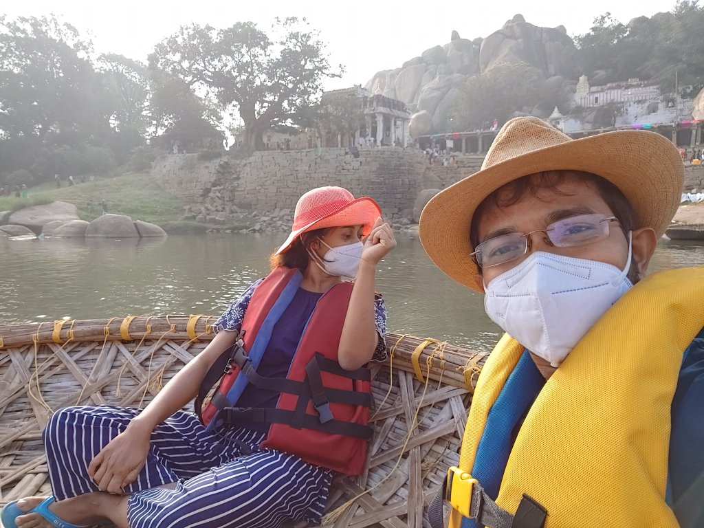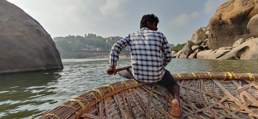 vi) হাম্পিতে প্রচুর দেখার জায়গা। তাই selective দুটো জায়গারই তথ্য দিচ্ছি। নদীর একদিকে হাম্পির বিখ্যাত boating (পোষাকি নাম Coracle ride), half hour এর charge 500 টাকা per person, 1hr এর 800 টাকা। এই boating এর experience skip করলে বোকামি হবে।
