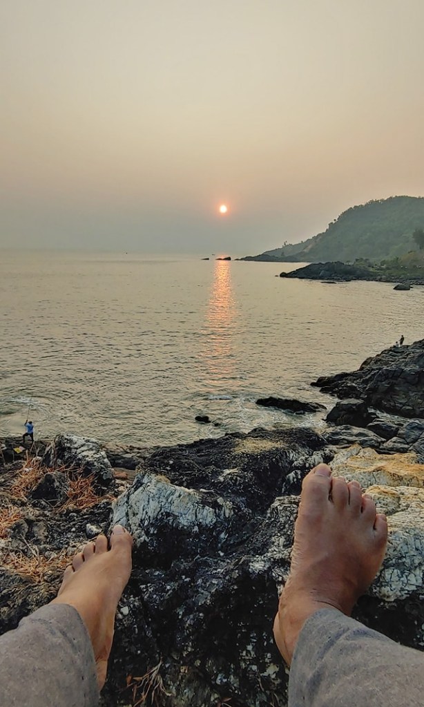 x) Trek করে ফিরতে না চাইলে এখান থেকে boat এও ফিরতে পারেন। Kudle beach এর জন্য per head 400 টাকা, আর Belekan যাওয়ার জন্য 300 টাকা। আমরা হেঁটেই ফিরলাম Belekan। Belekan এর ঠিক মুখে একটা খাল, যেখানে আগের দিন গোড়ালিও ডোবেনি, পাথরে পা দিয়েই পেরোনো গেছিলো, ভরা কোটালের জলস্ফীতির কারণে সেই একই খাল পার করলাম কোমর-সমান জলে ডুবে!!