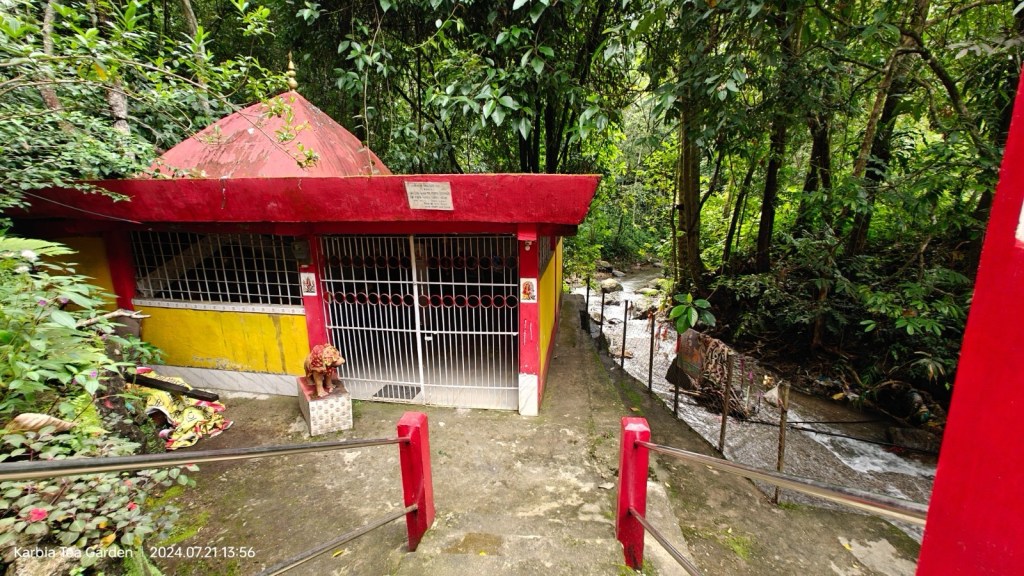 কিছুদূর গিয়ে একটা শিব মন্দির, পুরনো আর বেশ বড়, পূজোর তিথিতে ভালোই ভিড় হয়, বোঝা যায়। সব কিছু ভালোর মধ্যে একটা জিনিসই একটু চোখে লাগে, মন্দিরের মূল ফটকে হিন্দিতে লেখা অম্বতীয়া শিব ধাম। পশ্চিমবঙ্গে এখন বাংলার বড়ই দুর্দিন.. এই মন্দির থেকে একটু এগোলে, আছে অম্বতীয়া দেবী ধাম। পাহাড়ি ছোট্ট নদীর ধারে ছোট্ট মন্দির, খুব সুন্দর। মোটামুটি এইখান থেকে রাস্তা আগের থেকে ভালো। লোকজনকে জিজ্ঞাসা করে জানলাম Kurseong না গিয়েও Fatak বলে একটা জায়গায় Pankhabari road এ ওঠার একটা রাস্তা আছে, সেটাই ধরলাম, যেহেতু আমরা ফিরবো Falakata।