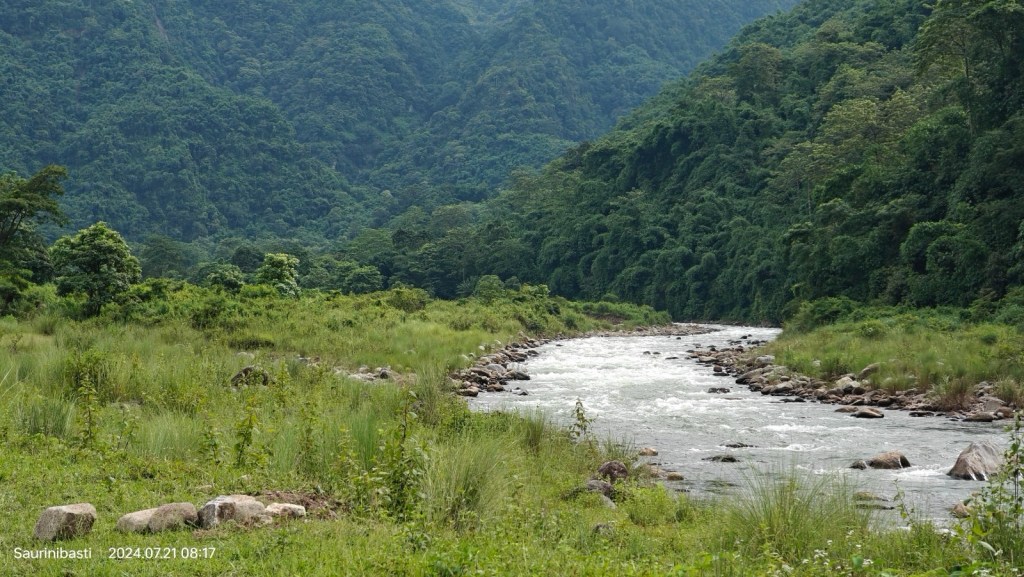 কিন্তু Gyaman bridge এর একটু আগে main রাস্তা ছেড়ে বাঁদিকে Firm Stay এর রাস্তা ধরার কিছুক্ষণের মধ্যেই চোখে সরষে ফুল দেখা শুরু করলাম। রাস্তার অবস্থা বেশ খারাপ। নাচতে নাচতে পৌঁছলাম ব্রীজের ঠিক তলায়। ততক্ষণে ভীষণ সন্ধিহান যে আগে যাব নাকি ফিরে যাব। এক জায়গায় রাস্তা দুভাগ হচ্ছে, doubt হচ্ছিলো, গাড়ি থেকে নেমে একটা রাস্তা ধরে পায়ে হেঁটে একটু এগিয়ে যেতেই নদীতে পৌঁছে গেলাম!! ফিরে এসে আবার phone করলাম, তারপর কথা মত অন্য রাস্তাটা ধরে আরো কিছুটা গিয়ে শেষমেশ পৌঁছলাম।