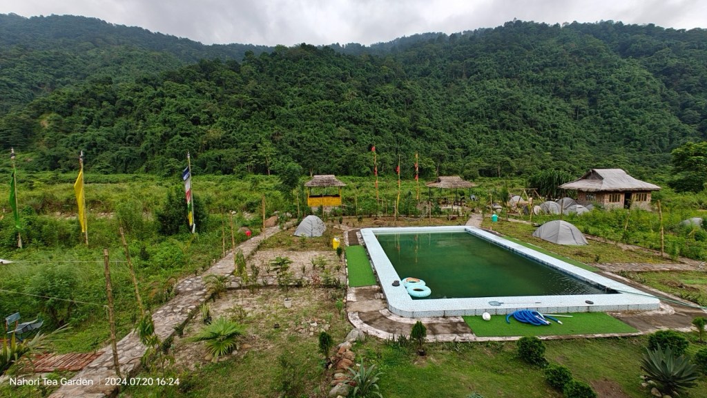 পাহাড়ে ঘেরা উপত্যকার মাঝে swimming pool, hammock – সব মিলিয়ে ছোট্ট cute setup!!