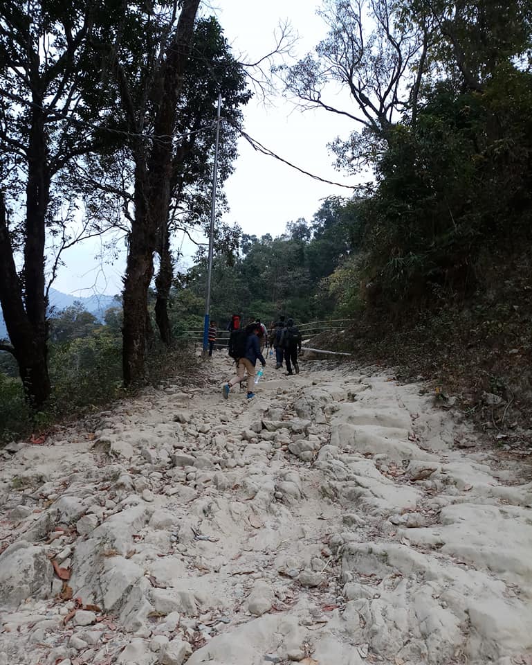 যাই হোক, 11টার দিকে অল্প অল্প খিদে পাবে, আর তখনই আপনার খেয়াল হবে যে ফেরার রাস্তা পুরো চড়াই!! মাথায় আকাশ ভেঙে পড়লেও উপায় নেই, খাওয়ার পাওয়ার জন্য পৌঁছতেই হবে উপরে!! অগত্যা…..