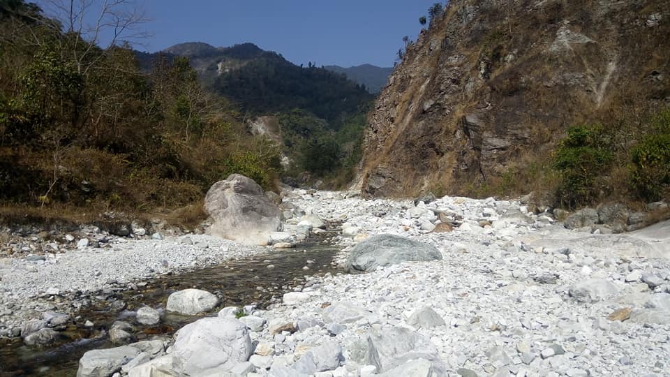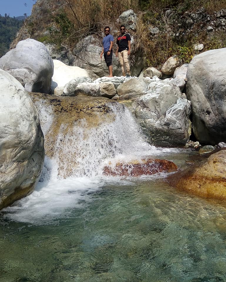 ওই tabletop এই আছে খাওয়ার দোকান, breakfast করেই বেরিয়ে পড়ুন। সাথে নিন towel, জল আর এক set dress। আজ trial trek এর second phase!! Homestay র লোকজনকে জিজ্ঞাসা করে নিন নদীর দিকে যাওয়ার রাস্তা। পায়ের grip আর শরীরের ভারসাম্য বজায় রেখে সরু রাস্তা ধরে তরতর করে নেমে আসুন। নদী দেখে সব ক্লান্তি চলে যাবে। পাহাড়ের মধ্যে দিয়ে বয়ে চলেছে। ধবধবে সাদা পাথর, আর কাঁচের মতো স্বচ্ছ জল। ঠান্ডা ঠান্ডা শিরশিরানী অগ্রাহ্য করে হিমশীতল জলে নেমে পড়ুন। উঠতে ইচ্ছা করবে না, আমি guarantee দিচ্ছি।