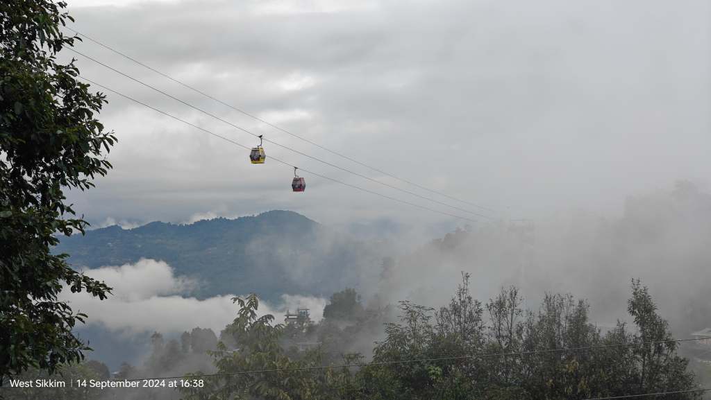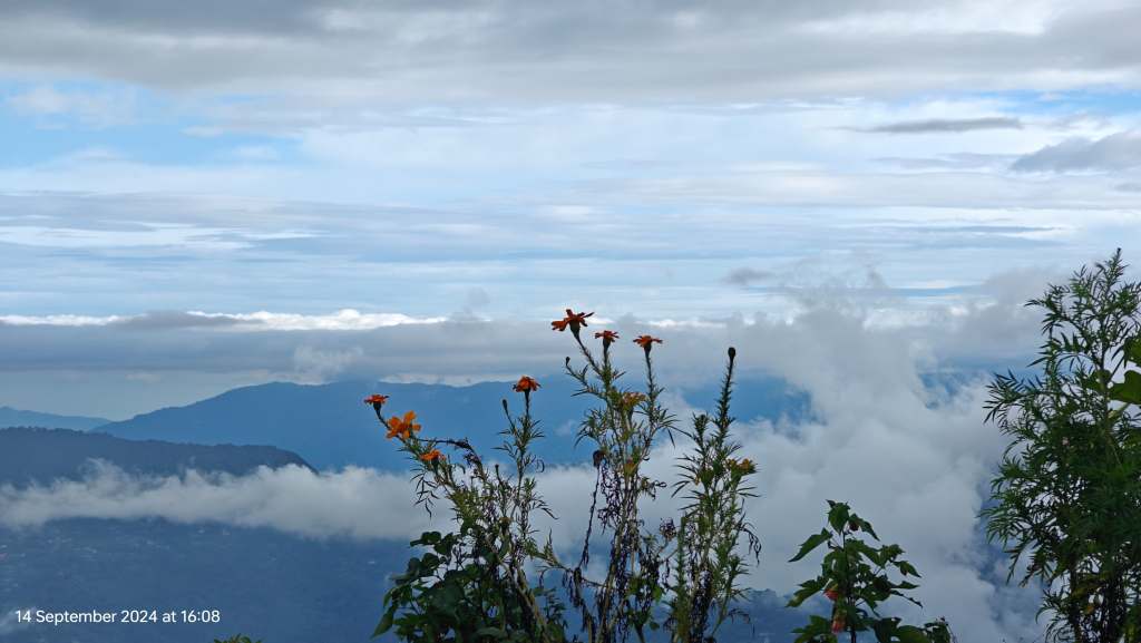 সারাদিন গাড়ীতে বসে। তাই কিছুক্ষণ rest নিয়ে, ভাবলাম শরীরটাকে সচল করার জন্য একটু হেঁটে আসা দরকার। সেই ভেবে Skywalk এর দিকে হাঁটা লাগালাম। দূরত্ব অনেকটাই। ‘বাপ রে, এতটা হেঁটে ফিরতে হবে’ ভাবতে ভাবতে একটা সময়ে পৌঁছে গেলাম!! মেঘের কারণে চারপাশের view সেরকম না পেলেও, মেঘের সাথে লুকোচুরি খেলতে থাকা বুদ্ধ বাবুকে দেখতে দারুণ লাগলো!! Pelling এর ropeway এখন under construction, এখানে আসা যাওয়ার পথে তারও দুয়েক ঝলক দেখা গেলো। রাস্তার ধারে রঙিন সব ফুল, এসব নিয়ে নেহাৎ মন্দ কাটলো না সময়টা।